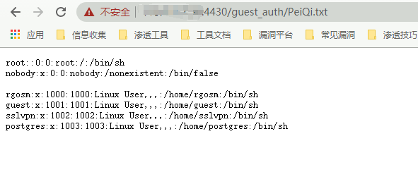 然后访问页面 /guest_auth/PeiQi.txt 就可以看到命令执行的结果