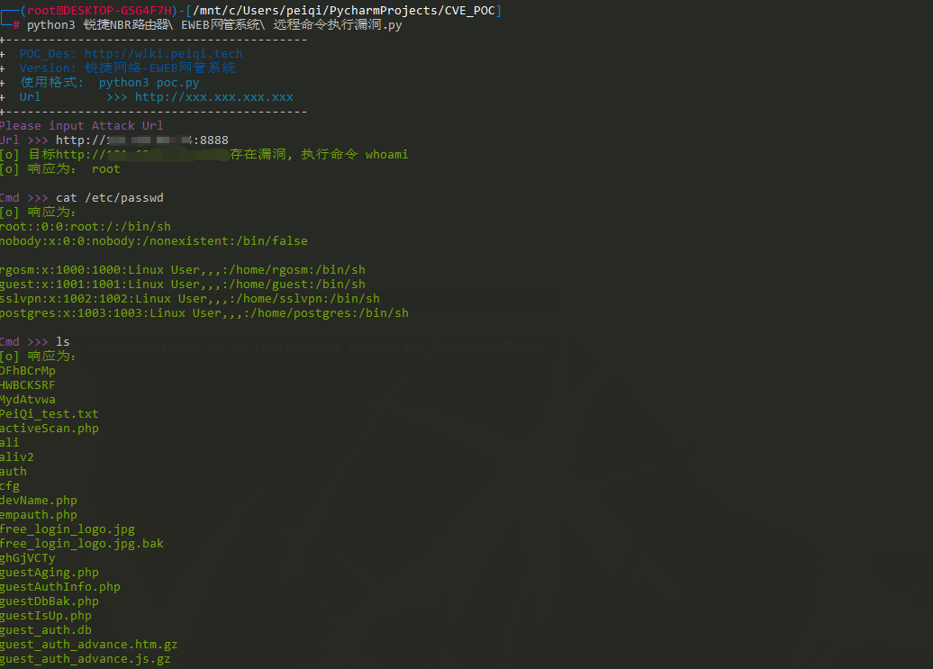 锐捷NBR路由器 EWEB网管系统部分接口存在命令注入,导致远程命令执行获取权限