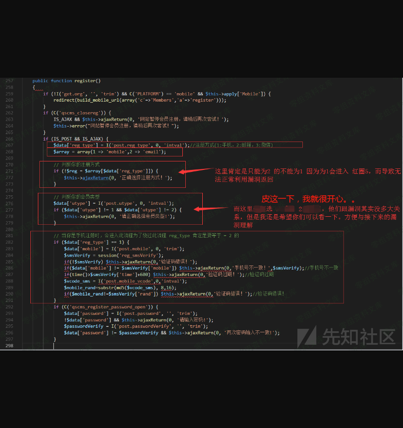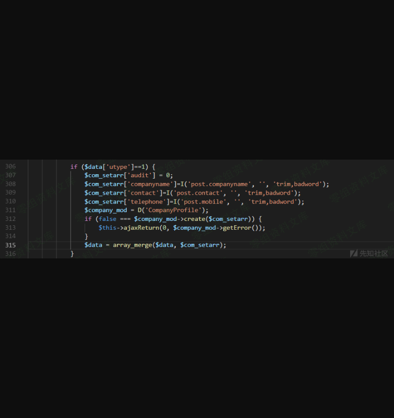 这里写着 当 $data[utype] = 1 会进行用户注册,而$data[utype]是我们可以控制的所以我们为2绕过此判断这里我又跳过了前面一些无关紧要的内容,来到了最后的漏洞触发点。因为真的无关紧要,所以就跳过了