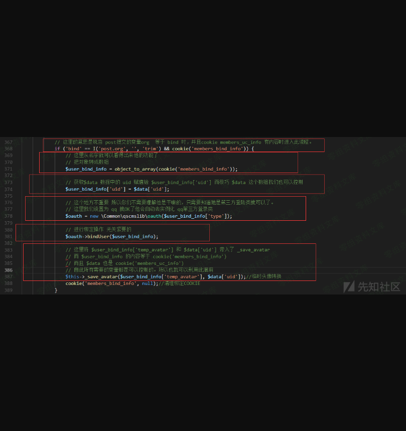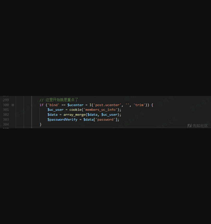 这里我们讲解一下如果 post的变量ucenter为bind时,则通过cookie获取数组$uc_user接着会进行数组合并而members_uc_info的cookie值是可控的,所以$data也是可控的。