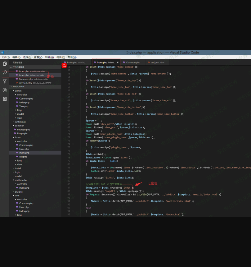 首先是从index目录里面的index模块下面的index方法调用了一个方法$template= $this->receive(\'index\'); = index