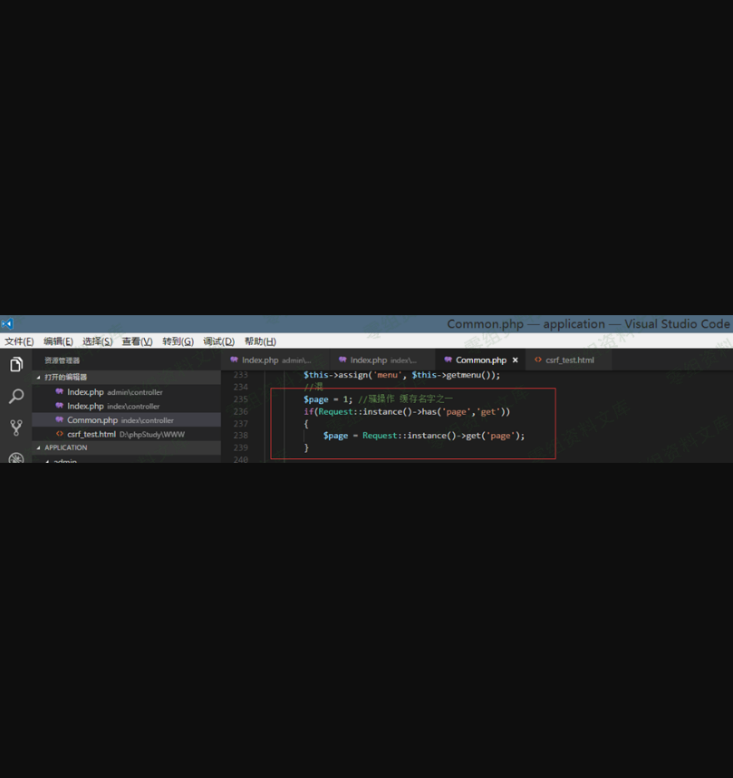 然后是ndex目录里面的Common模块里面的receive 方法获取了变量$source 值 = index获取了变量$page 值 = 1