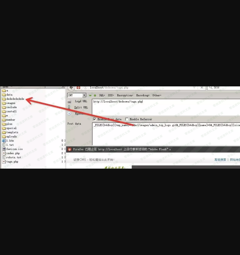 但在这之前有个if(!defined(\'DEDEADMIN\'))的判断,这个很好绕过设置tmp_name为0或者1.jpg含. 就可以绕过。