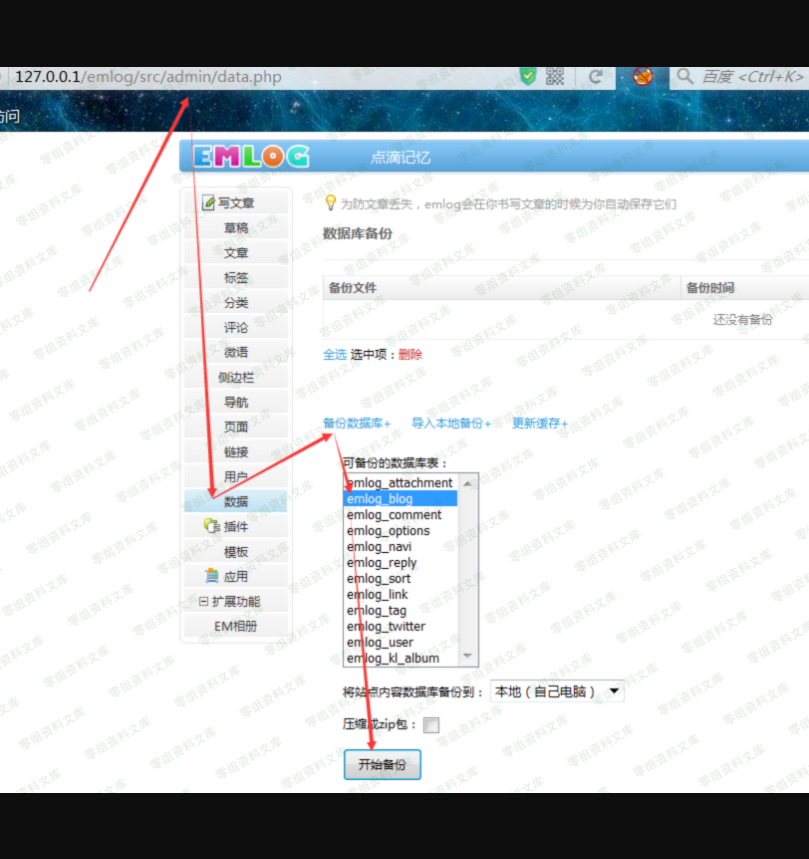 备份数据库到本地: