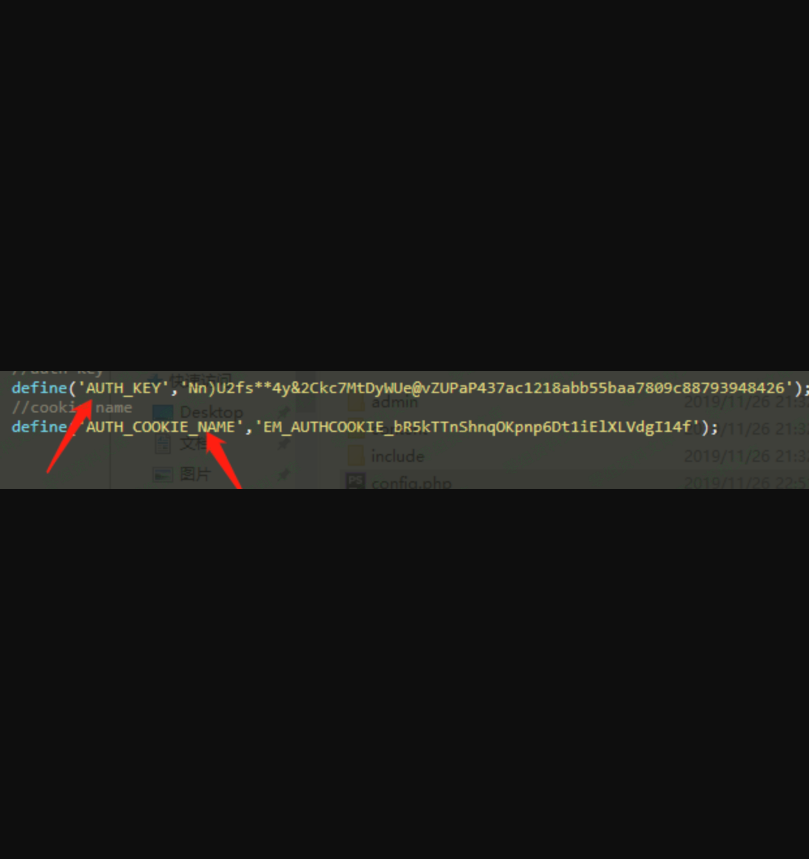 在安装完毕后打开config.php看到两个比较奇怪的常量定义:AUTH_KEY和AUTH_COOKIE_NAME从名字来看这连个常量肯定是有一定联系的。如下图: