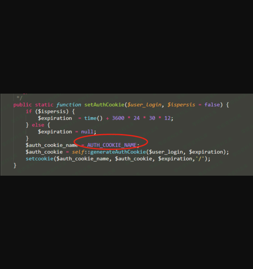 我们在抓包时候发现了AUTH_COOKIE_NAME这个常量,说明这是一个cookie名。我们继续再代码中追踪这个常量。
