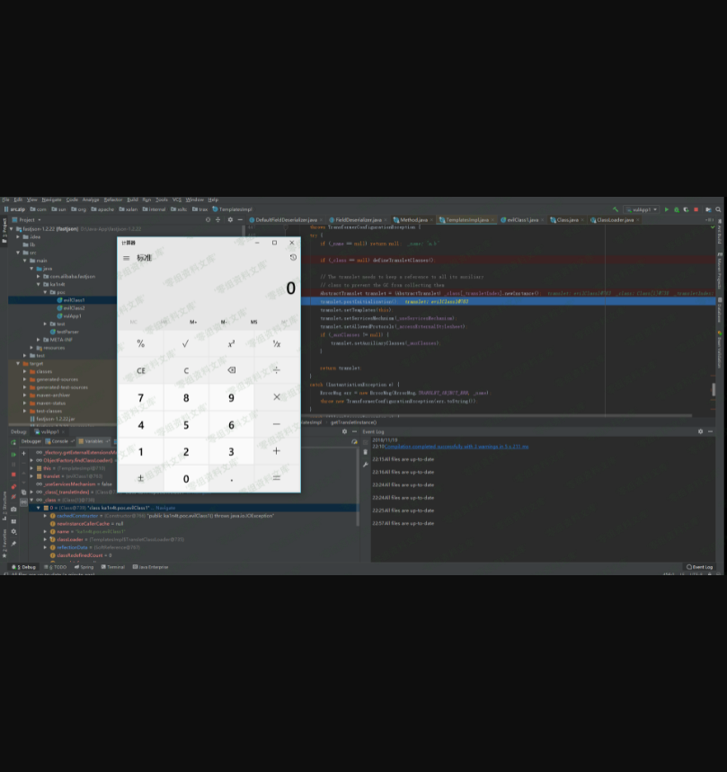 _bytecodes是经过base64编码的evilClass1的字节码文件,NASTY_CLASS是TemplatesImpl类。总结一下这个payload,利用JSON.parseObject反序列化TemplatesImpl类,其中_bytecodes属性是经过base64编码的恶意类字节码文件。