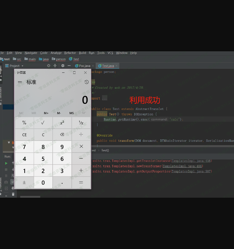 其中的构造方法是用exec弹个计算器。看下poc,vulApp1.java: