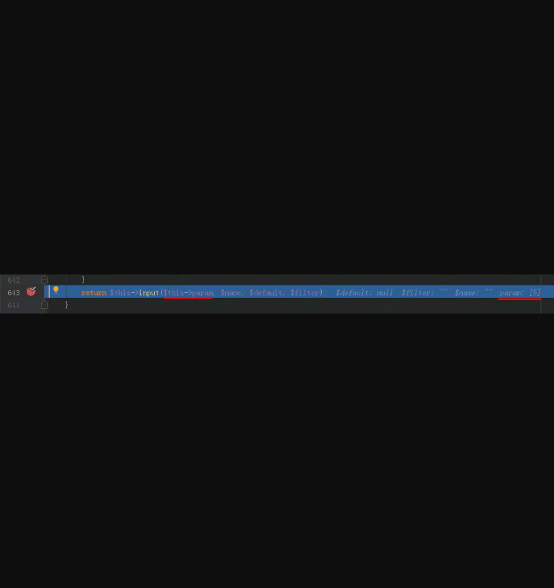 /core/library/think/App.php类中的exec 函数通过Request::instance()->param()调用了param函数。
