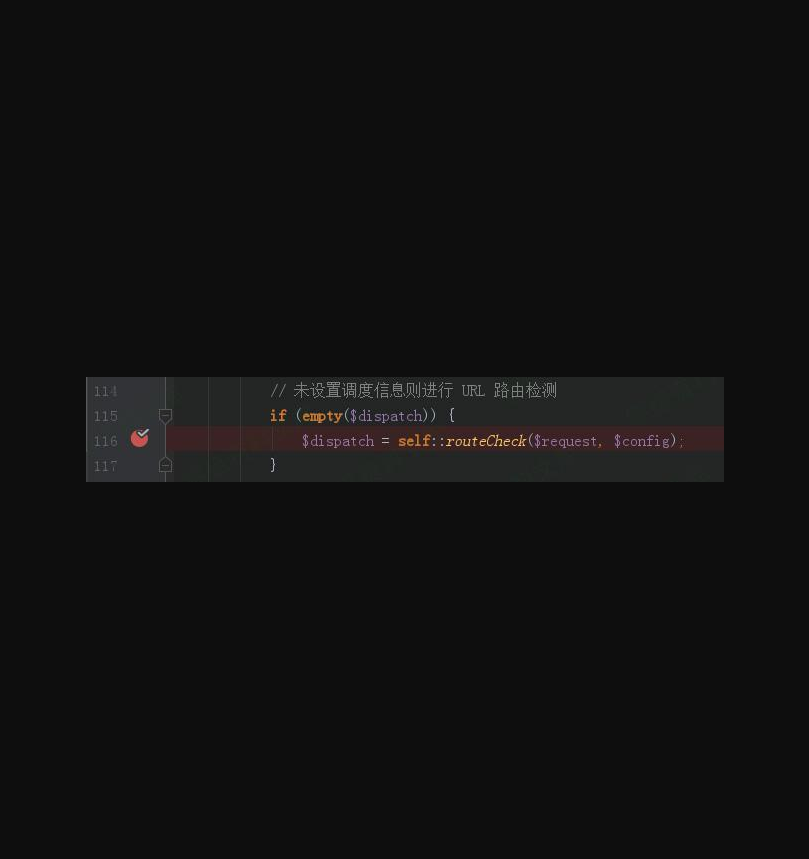 /core/library/think/App.php类中run函数里,获取dispatch变量值时调用了routeCheck函数。routeCheck函数中则通过Route::chekc调用了check函数。/core/library/think/Route.php类中,check函数通过dispatch变量值时调用了routeCheck函数。routeCheck函数中则通过Route::chekc调用了check函数。/core/library/think/Route.php类中,check函数通过dispatch变量值时调用了routeCheck函数。routeCheck函数中则通过Route::chekc调用了check函数。/core/library/think/Route.php类中,check函数通过request->method()调用了method函数。