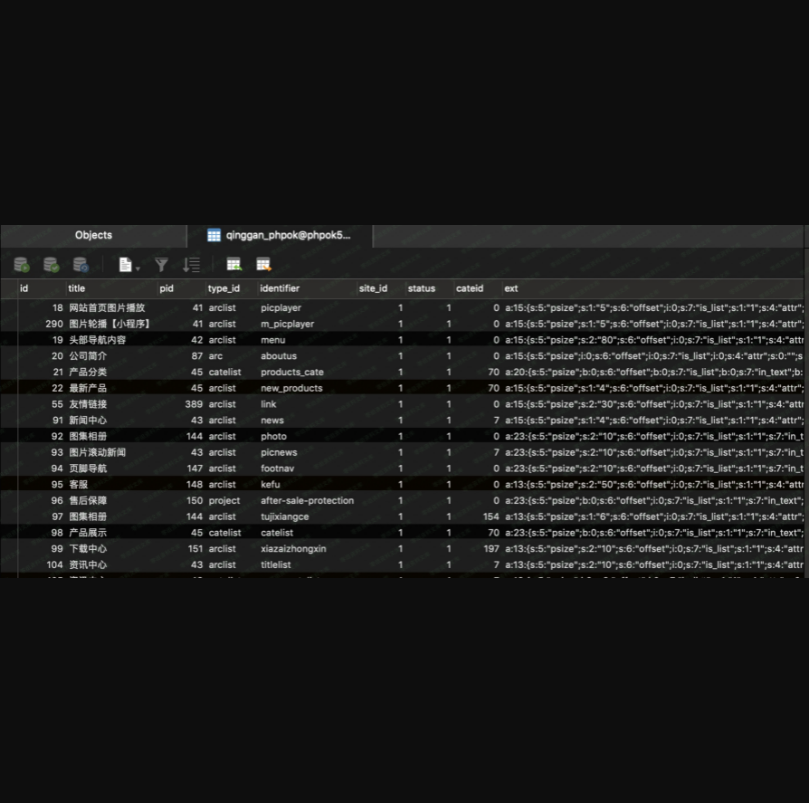这一段代码$this->model(\'call\')->all($siteid,\'identifier\');实现的是查询phpok表,其中identifier = xxx的信息,然后在phpok()函数的131行进行动态调用其插入为type_id的值函数。
