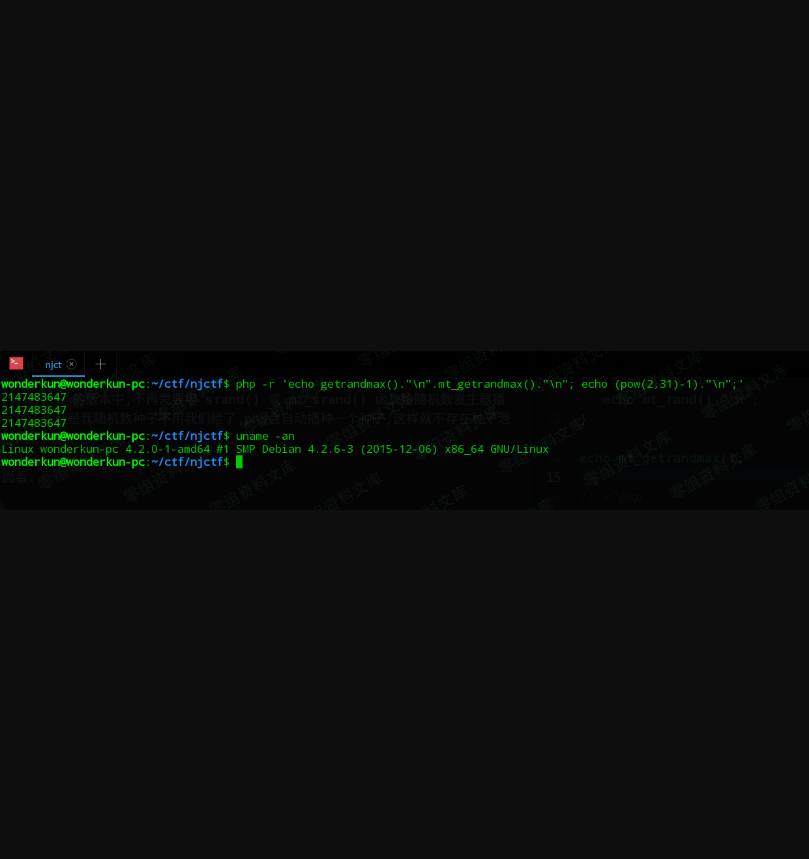 在我的 linux 64 位系统中,rand() 和 mt_rand() 产生的最大随机数都是2147483647, 正好是 2\^31-1 , 也就是说随机播种的种子也是在这个范围中,0 -- 2147483647 的这个范围是允许我们进行爆破的. 但是用 php爆破比较慢