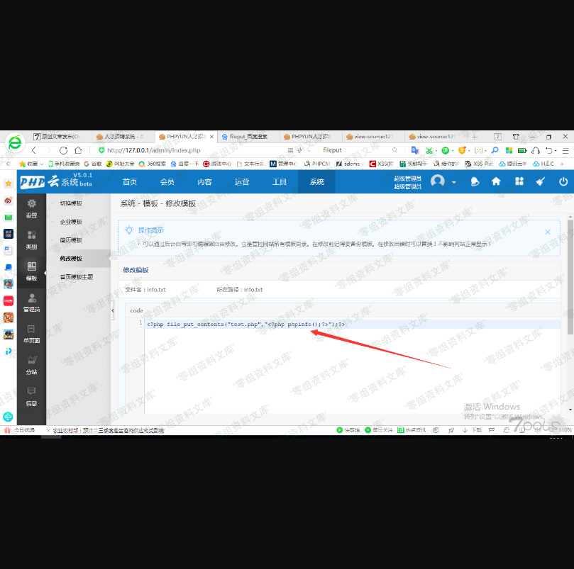 生存成功,但是发现()被大写,使用经典的include包含,随意找了一个模板下的info.txt文件,写入执行代码。