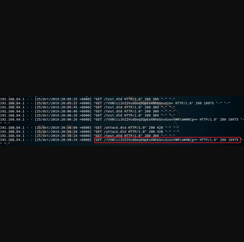 首先在自己的服务器(192.168.64.131)上创建一个供靶机外部引用的dtd文件(test.dtd)