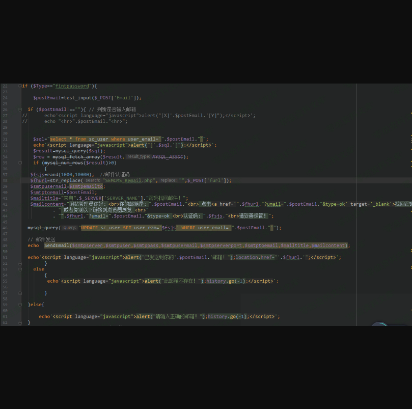 ,再看一下 web_email.php 中 type=findpassword 时的代码: