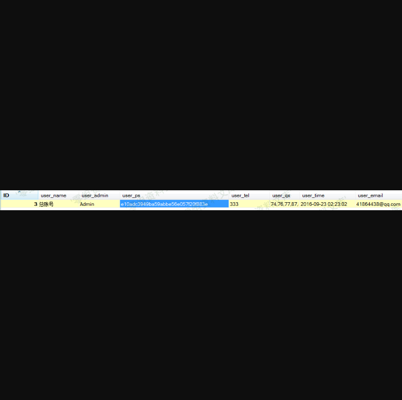 可以看到,密码会经过md5加密后再存入数据库中。 因此,这里可以通过