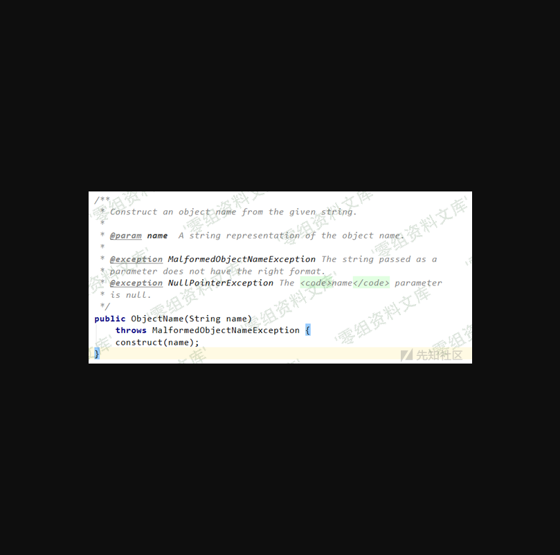 根据上图中的注释描述,可以根据一个字符串(对象名称的字符串表示形式)创建一个 ObjectName 对象,这个对象和后面的反射执行指定函数大有关系