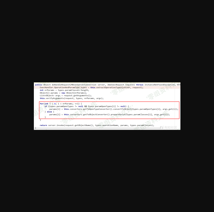 至此 JmxRequest 创建完毕,进入 org.jolokia.http.HttpRequestHandler#executeRequest 执行流程当中,其中很多部分就不详细跟踪,大致是又根据 exec 类型创建了一个 org.jolokia.handler.ExecHandler 对象