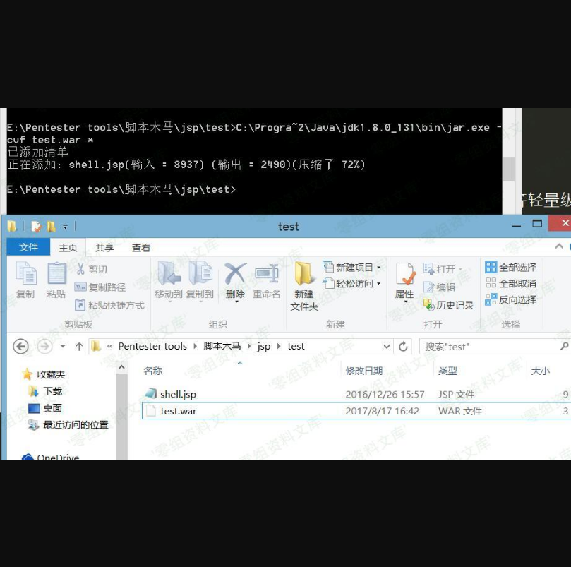 先准备了一个JSP的一句话木马,安装好JDK环境,我的目录是在C:\Program Files (x86)\Java\jdk1.8.0_131\bin,这个目录下又个文件叫jar.exe。