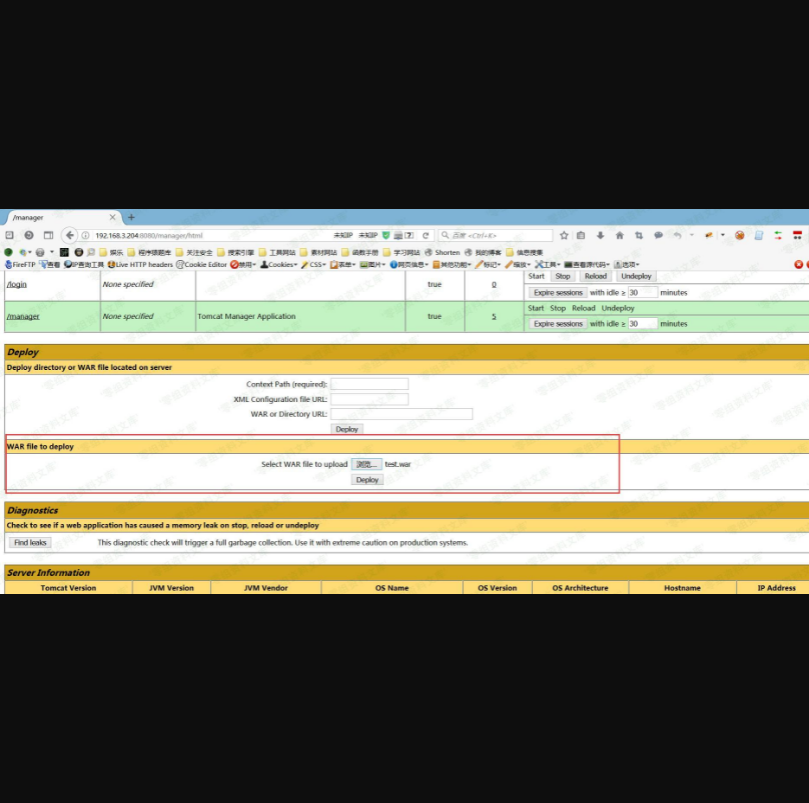 找到Tomcat管理页面中的WAR file to deploy进行上传就可以部署了。