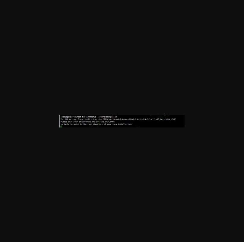 [weblogic\@localhostroot]$cd /home/weblogic/Oracle/Middleware/user_projects/domains/base_domain/ [weblogic\@localhost base_domain]$ ./startWebLogic.sh