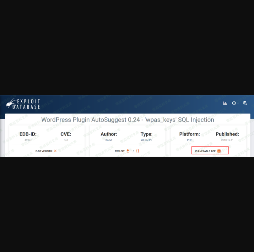 首先我们得进入exploit-db网站上下载这个存在漏洞的版本的插件原始码和本地构建WordPress网站(本地构建WordPress这里就不说了)。下载源码,如下图所示