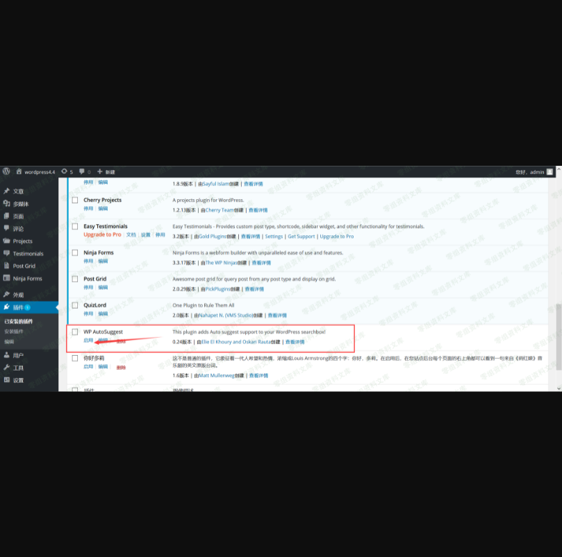 下载完成之后,把wp-autosuggest目录直接拖到Wordpress目录的\wp-content\plugins\下。