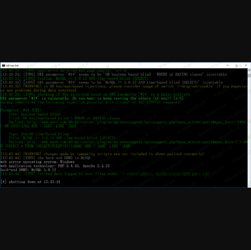 根据exploit-db网站上给出的漏洞详情,我们也知道了wpas_keys参数存在注入,于是我们可以使用SQLMAP注入神器,对网站进行注入。SQLMAP命令如下: