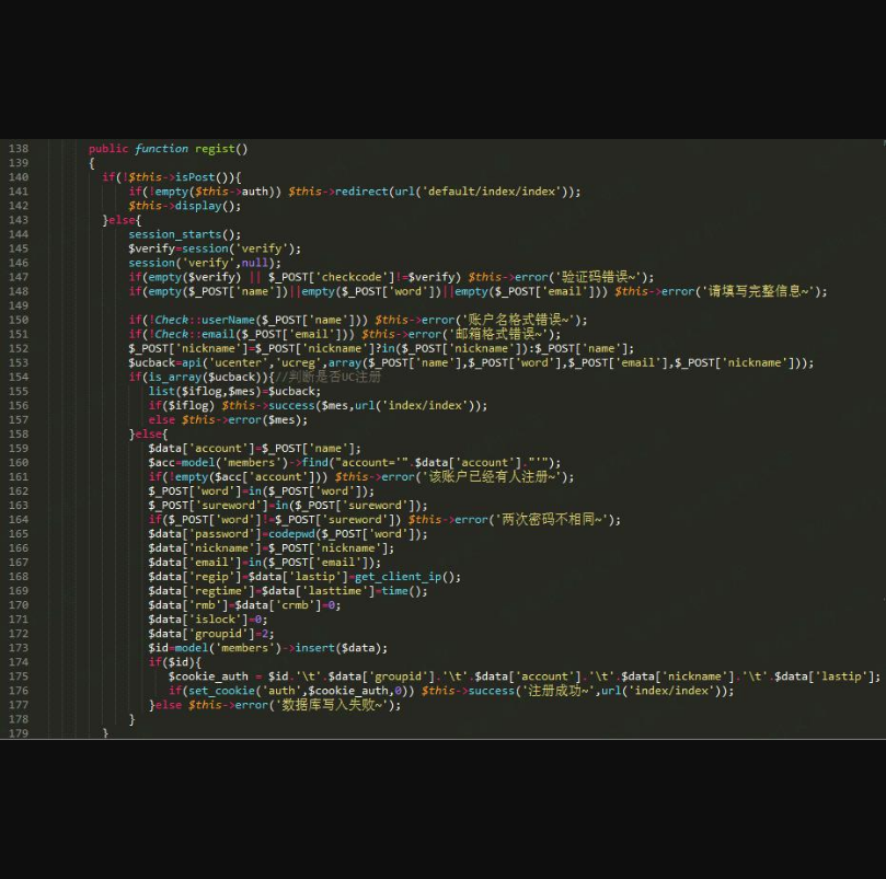 但之后又看到在regist功能中,第176行调用了自定义的set_cookie函数,如下: