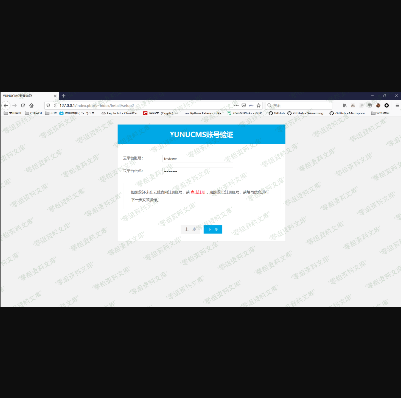 需要注意的是需要填云账号,我去官网注册了一个随便填上了,账号testqwe,密码123456,手机号利用的在线短信注册的