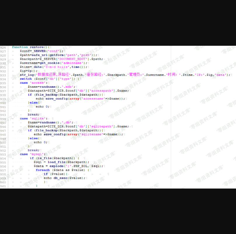 首先来看restore函数,mysql数据库,发现path是可控的,看955行,跟进到load_file函数