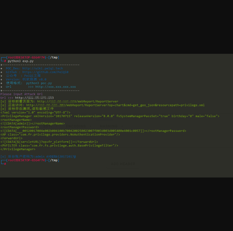 vuln_url_1 = target_url + '/WebReport/ReportServer'