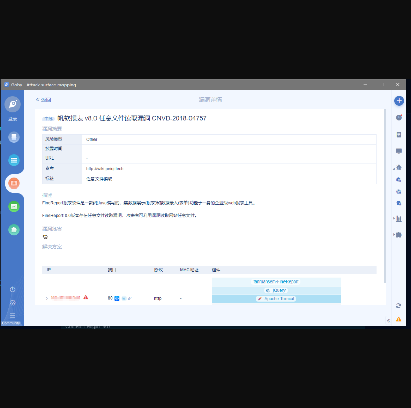 FineReport v8.0版本存在任意文件读取漏洞,攻击者可利用漏洞读取网站任意文件。