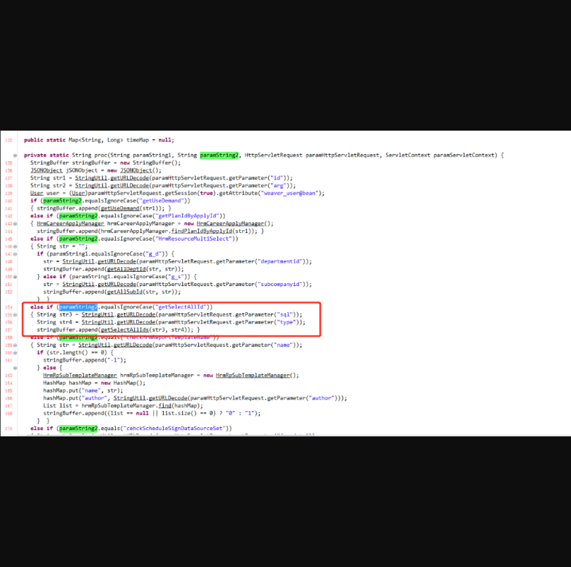 在proc方法中,对cmd参数值进行判断,当cmd值等于getSelectAllId时,再从请求中获取sql和type两个参数值,并将参数传递进getSelectAllIds(sql,type)方法中