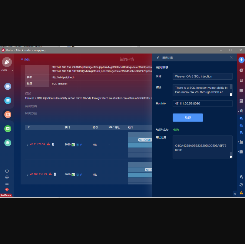 泛微OA V8 存在SQL注入漏洞,攻击者可以通过漏洞获取管理员权限和服务器权限