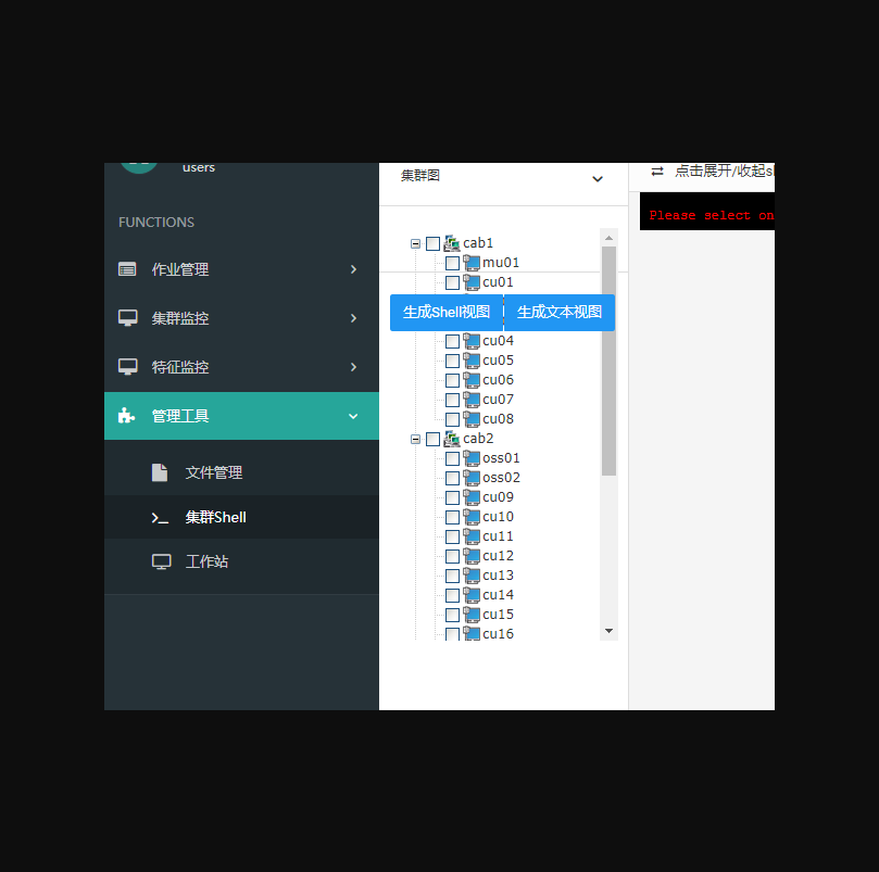 注意参数 node 中的 cu01 需要为shell集群中的存在主机