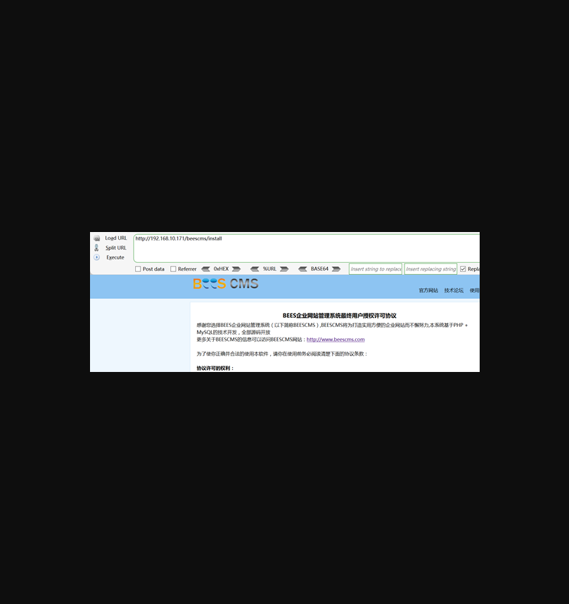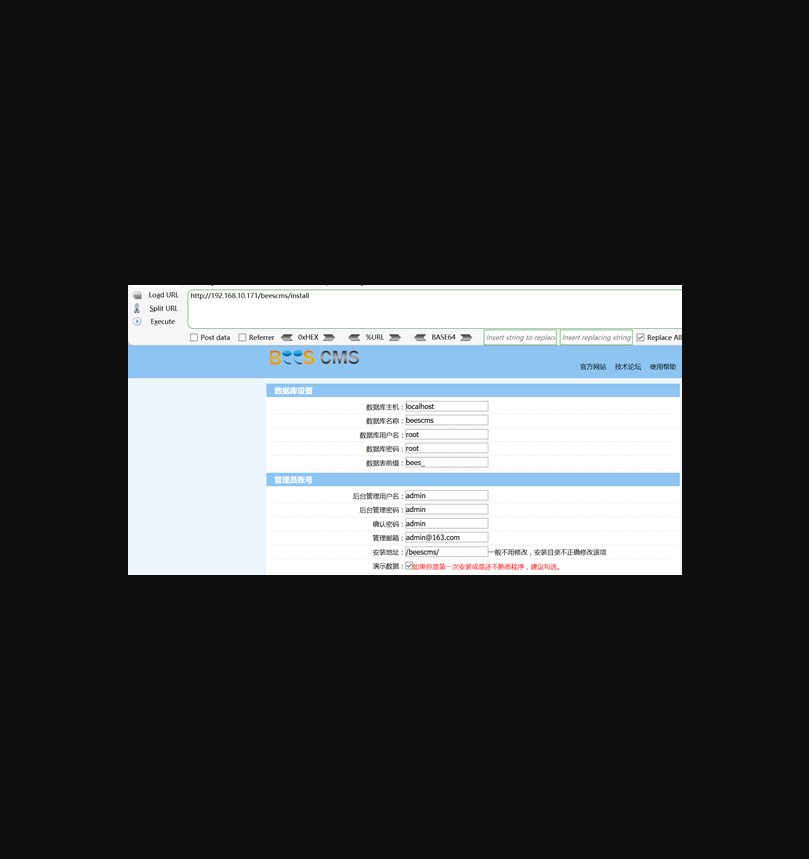 浏览器访问http://192.168.10.171/beescms/install,开始安装