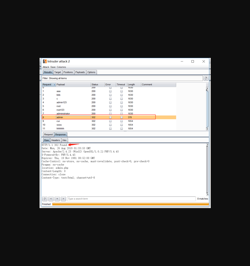 根据枚举出来的用户名,然后枚举密码,可以看到成功枚举密码