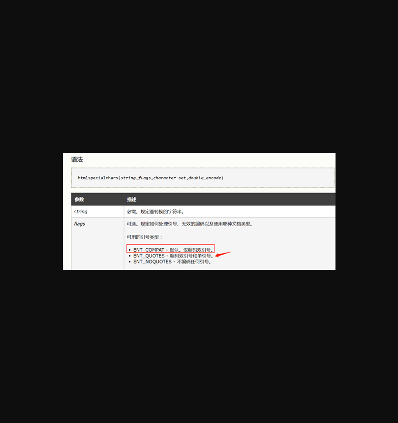 跟进f1\_html函数,发现使用htmlspecialchars函数对输入的特殊符号进行html实体化转义,主要用于防御XSS漏洞