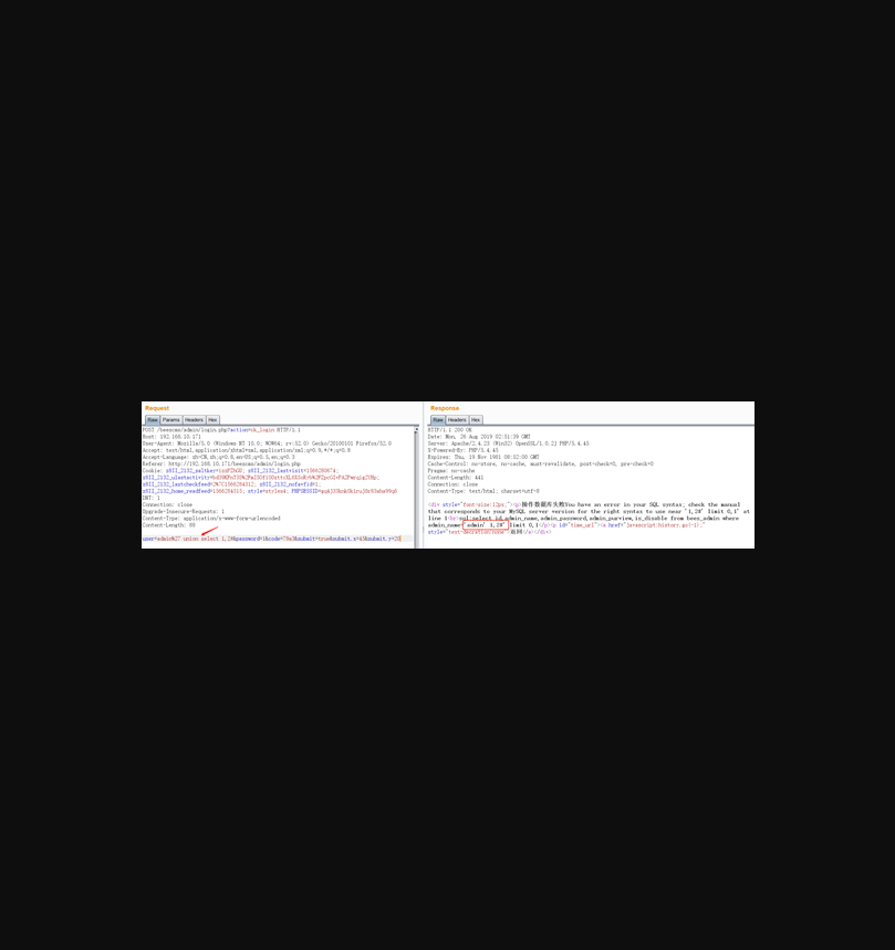 在用户名处输入单引号,报错,说明存在sql注入漏洞