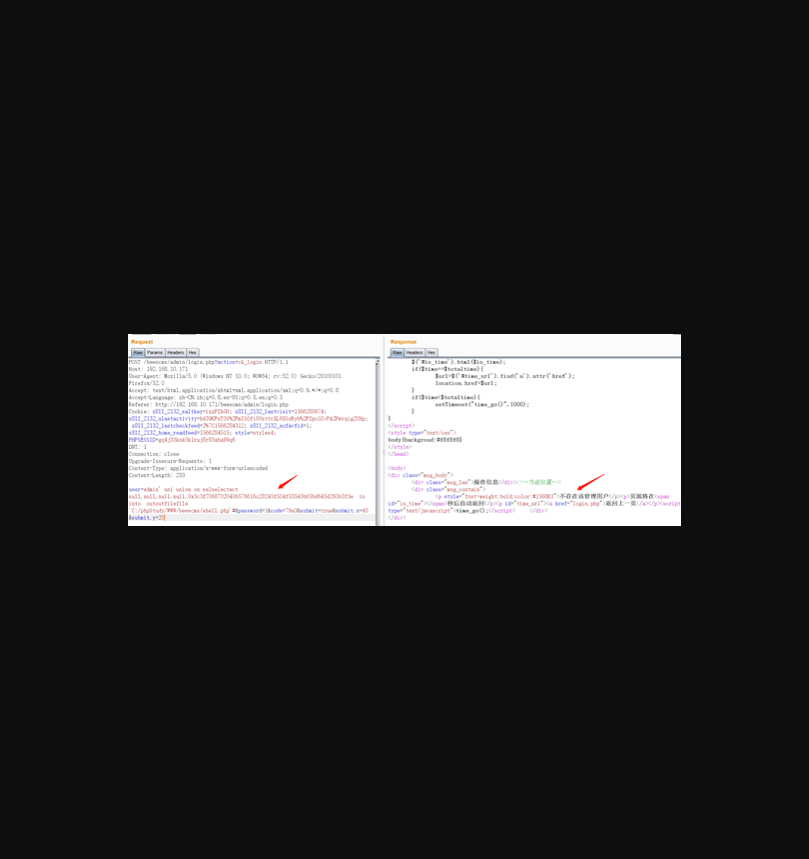 通过上面的分析,发现php函数htmlspecialchars()对输入中含有的特殊符号进行html实体化转义,导致不能写shell到目标服务器上。可以通过利用mysql注入的一个特性就可以达到注入效果(即对shell部分进行Hex编码),或者用mysql函数char()就可以绕过这里的限制。