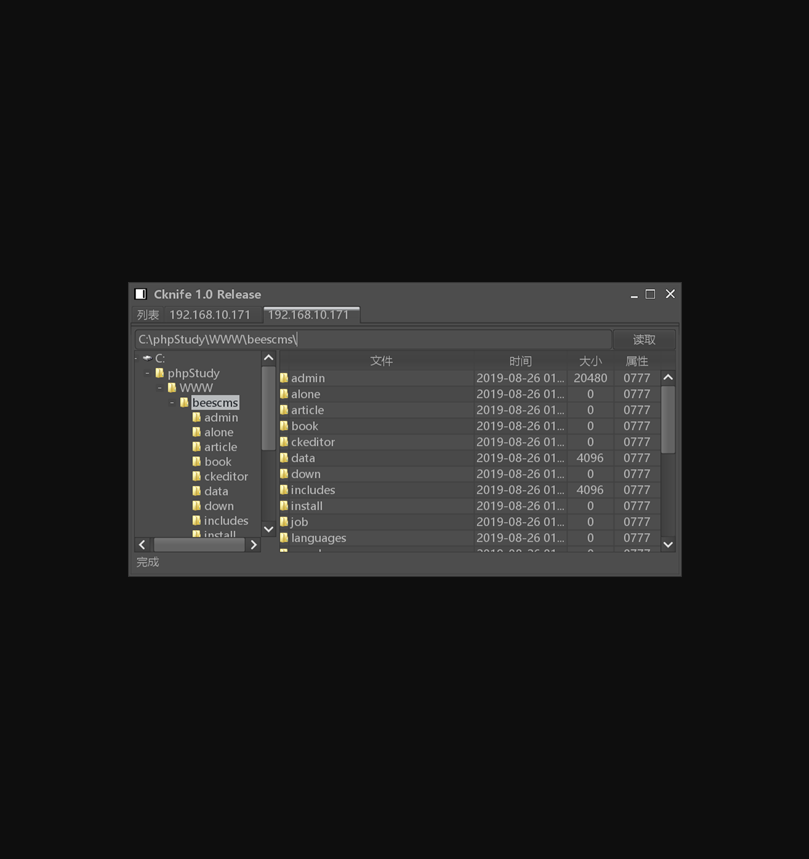 浏览器访问后台页面http://192.168.10.171/beescms/admin/