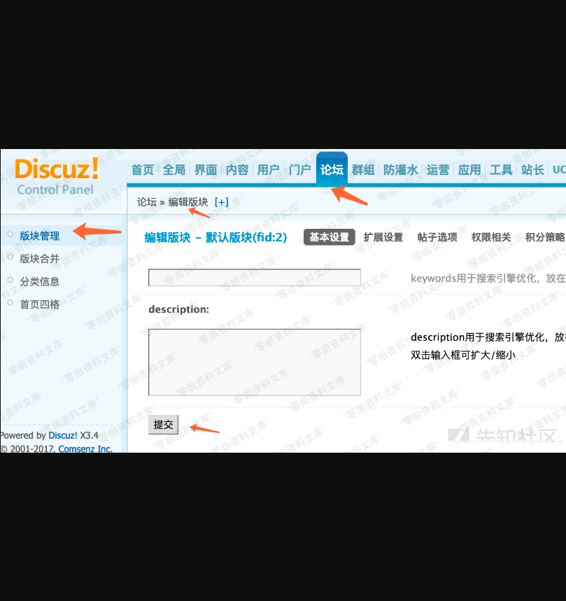 登陆后台,进入论坛->模块管理->编辑板块,使用burp拦截提交的数据。