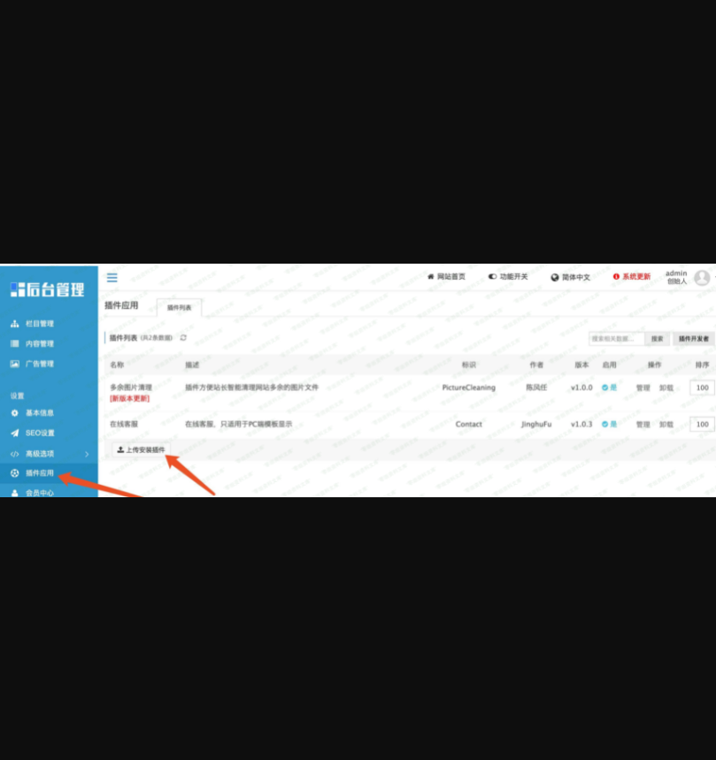 在后台-----》插件应用-----》上传插件这里可以上传zip文件